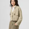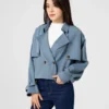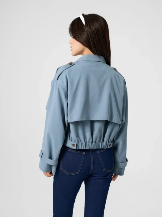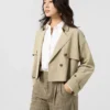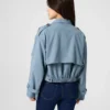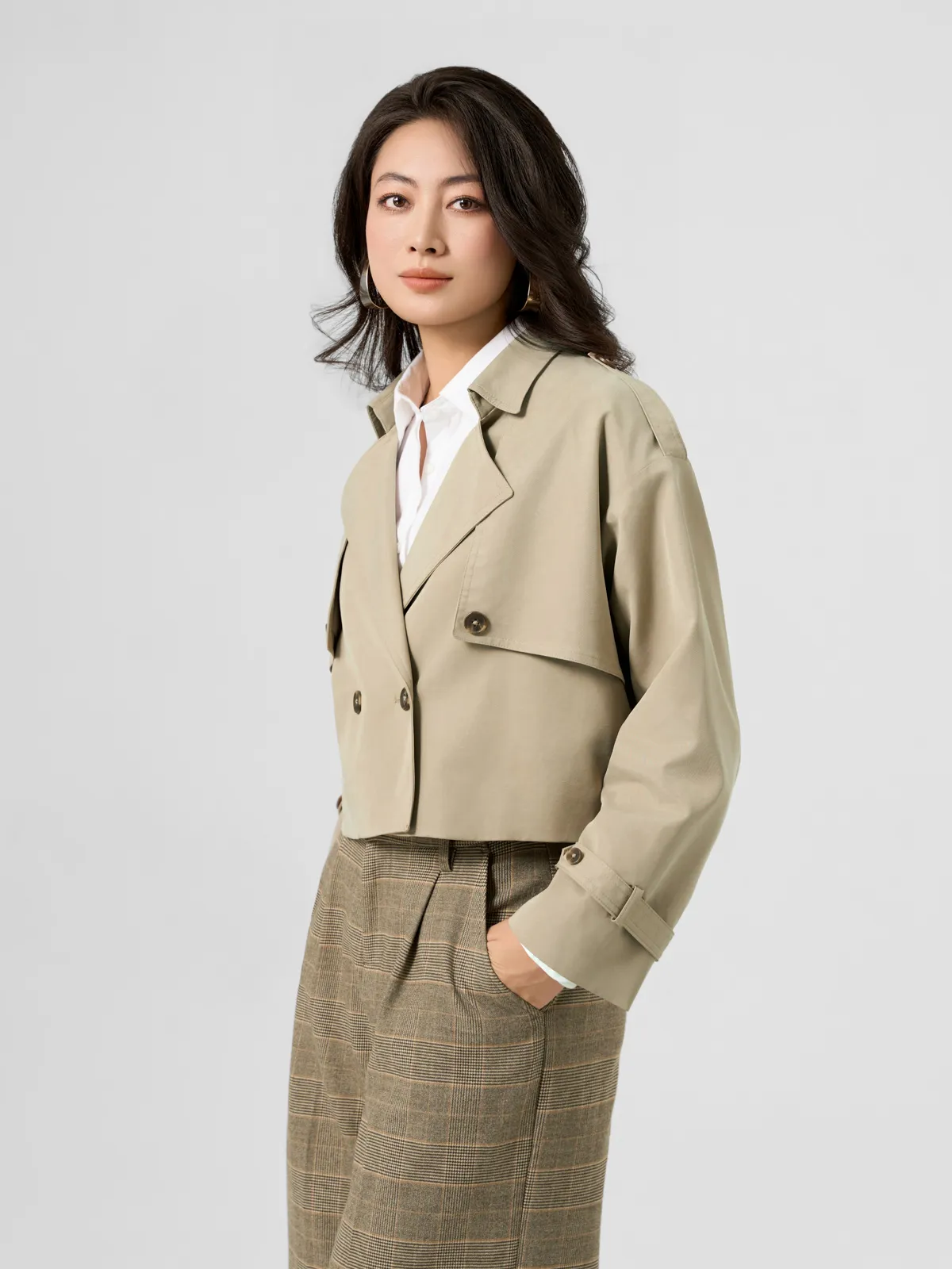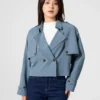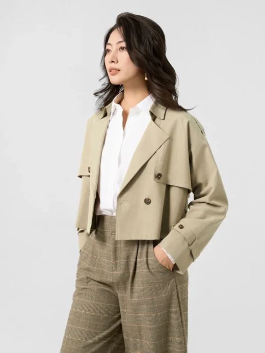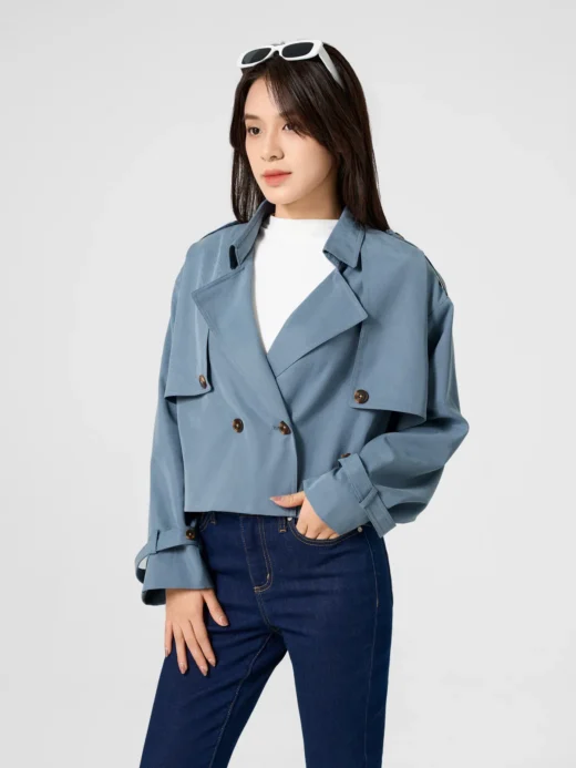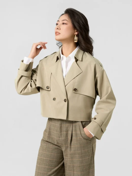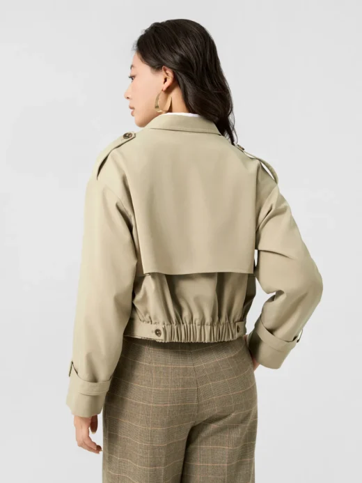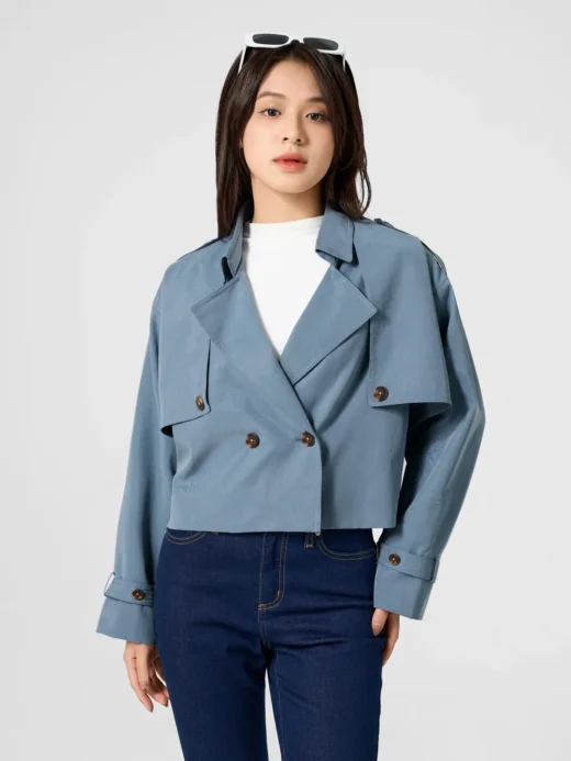 Áo Măng Tô Nữ Dáng Ngắn Chun Lưng Cạp