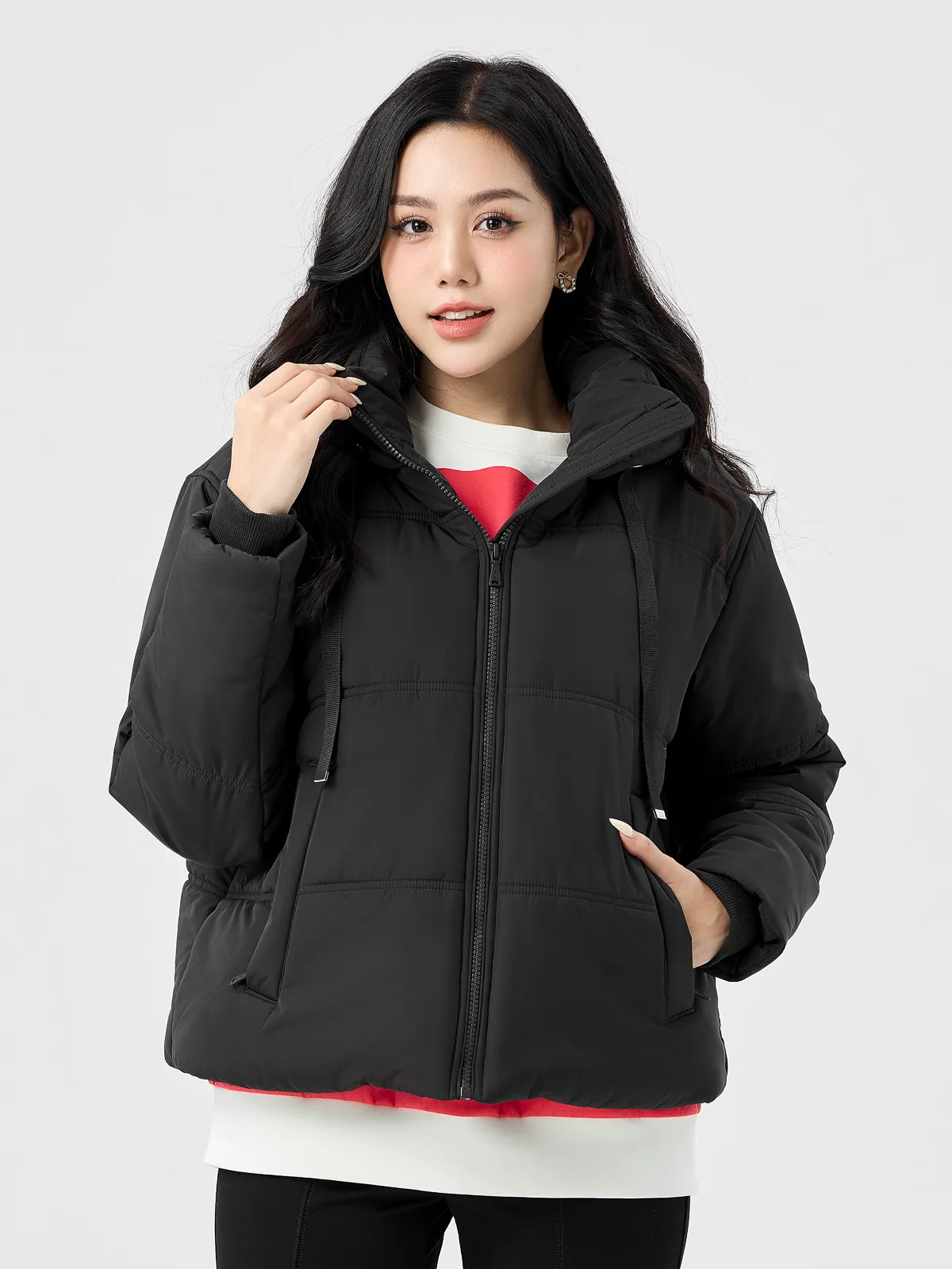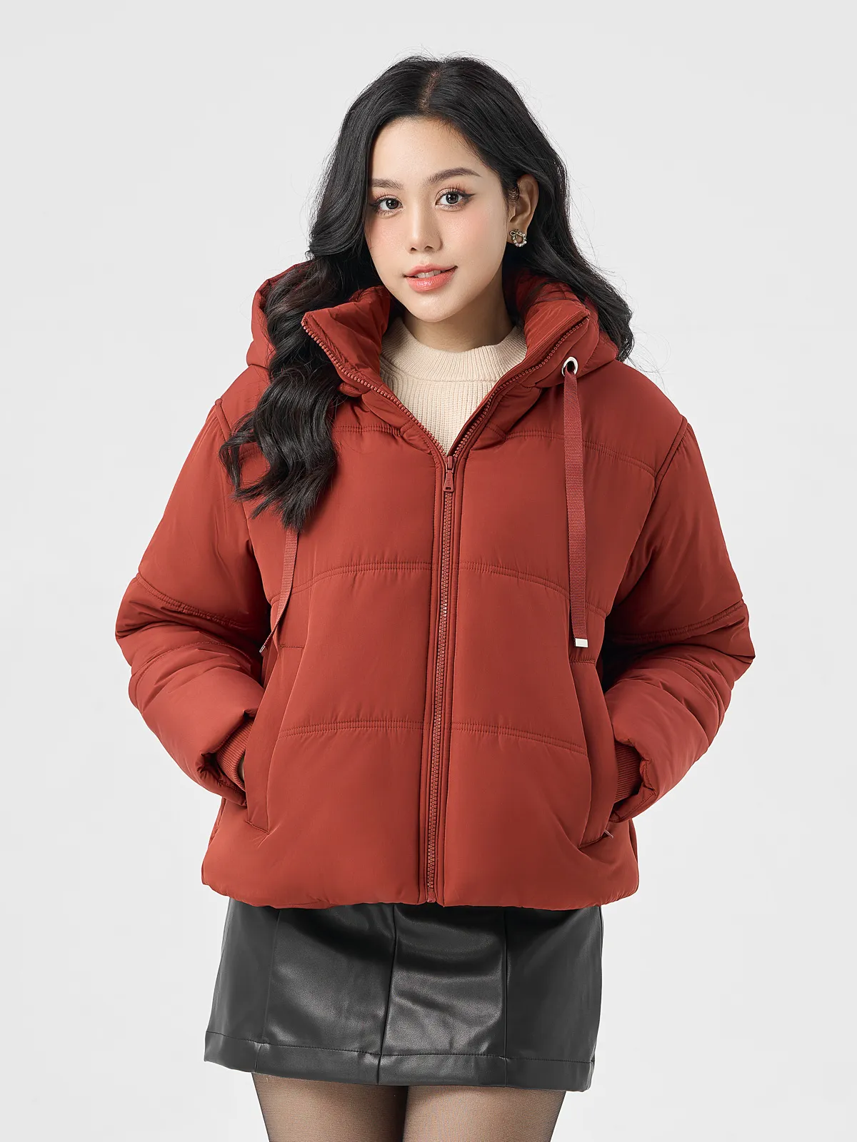 Phao Vip Nữ Dáng Ngắn Dây Rút Mũ